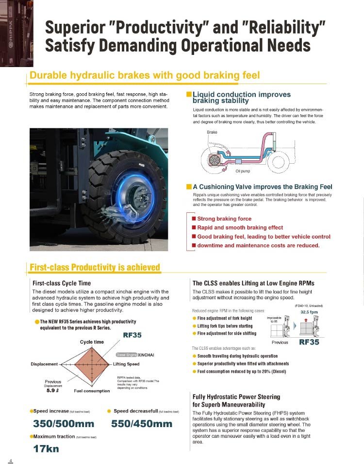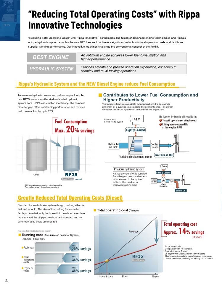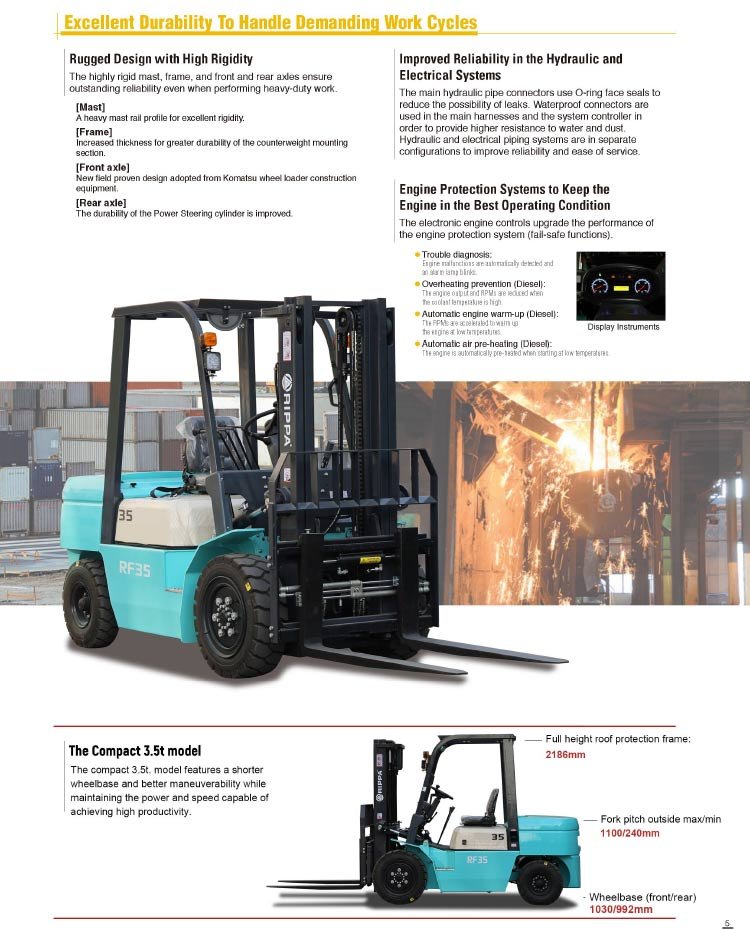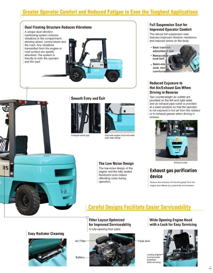 With industry-leading power, innovative hydraulics, reduced fuel consumption, and operator-focused design, the RF35 Diesel Forklift is built to enhance productivity and maximize savings. Whether you’re lifting heavy loads, operating in tough environments, or optimizing warehouse efficiency, the RF35 is your ultimate material-handling solution.