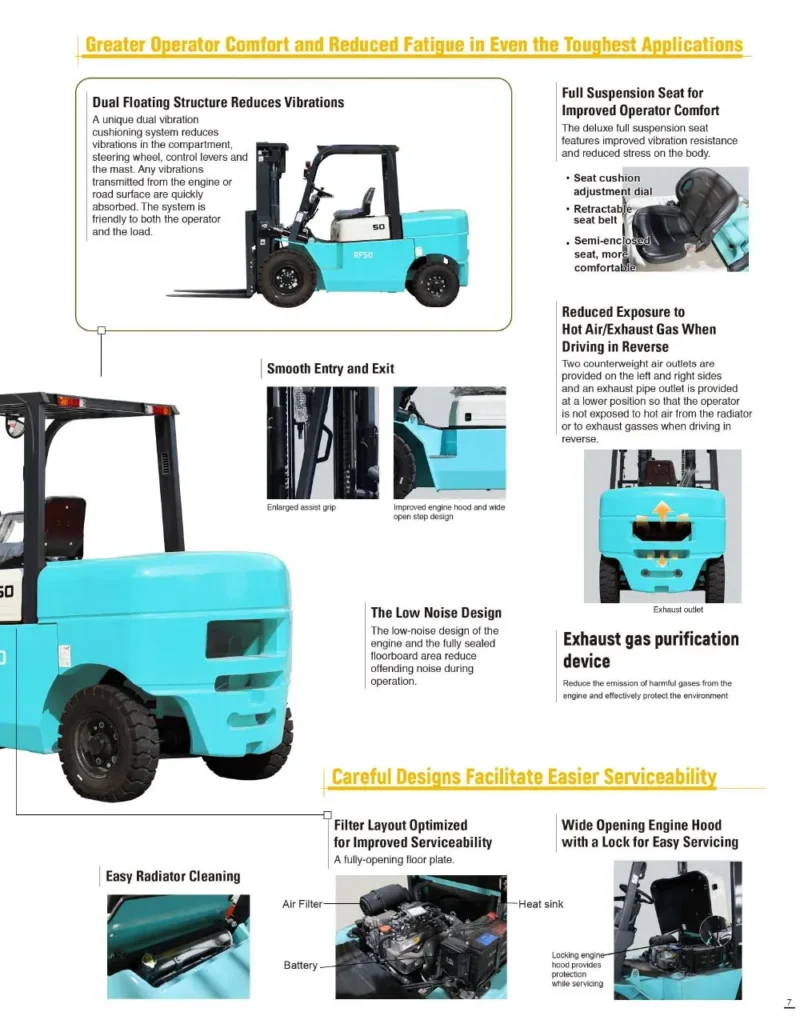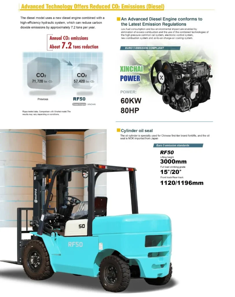 The advantages of the RF50 diesel forklift in terms of performance, quality, versatility, operator comfort, operating efficiency and manufacturer strength will help attract foreign customers and promote export trade.